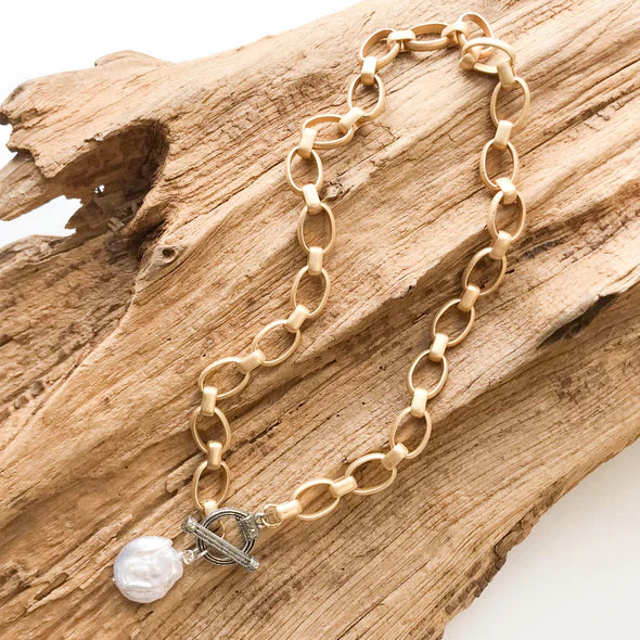 Oval Rolo 2-Tone w/ Coin Pearl Necklace