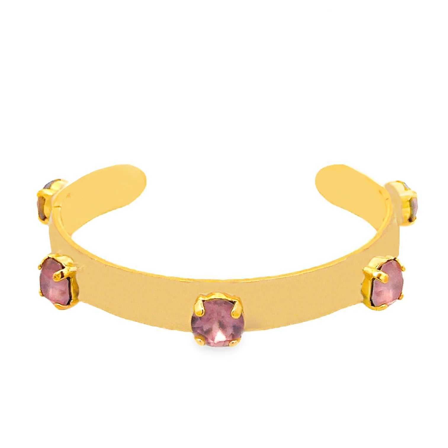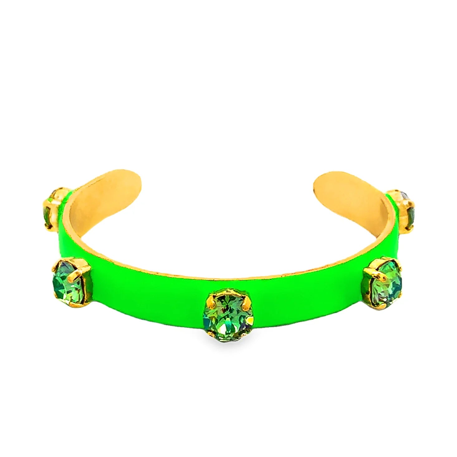 The Kennedy Cuff - a playful and unique addition to your accessory collection. Made in Canada with antique gold plated brass, high quality crystals, and hand painted enamel, this cuff is a one-of-a-kind piece that will add a touch of quirk to any outfit!