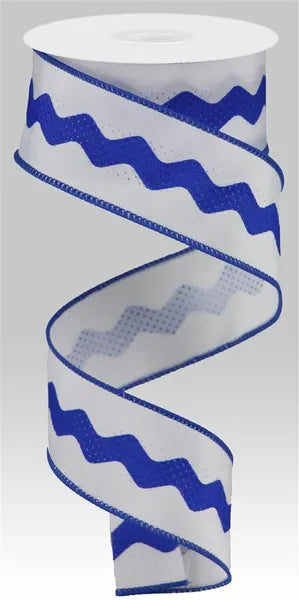 4" x 10yd Large Striped Check On Blue Royal Ribbon