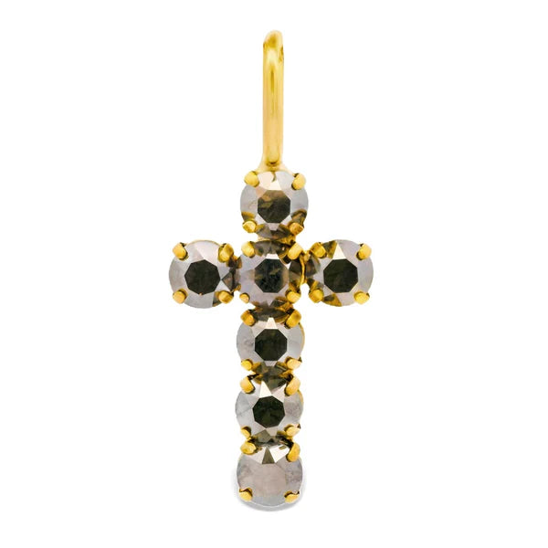 Add a touch of vintage charm to your look with the Ilex Pendant. Crafted from antique gold-plated brass and sparkling high-quality crystals, this 1.25" pendant slides effortlessly onto your favorite necklace, making every outfit shine a little brighter. Perfect for those who love a playful twist on timeless elegance!
